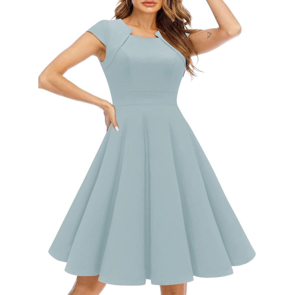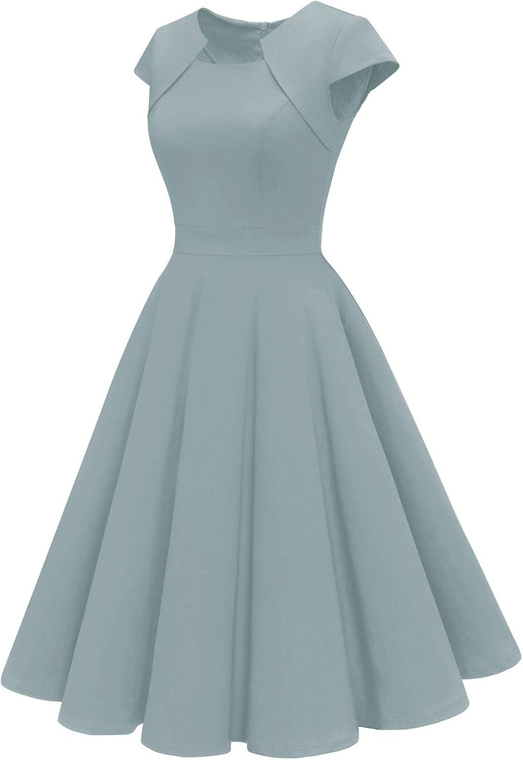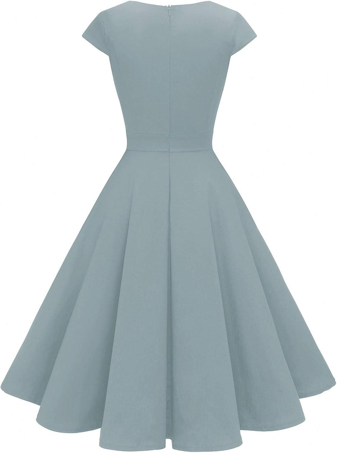 Homrain Women’s 1950s Retro Vintage A-Line Cap Sleeve Cocktail Swing Party Dress(Grey)
