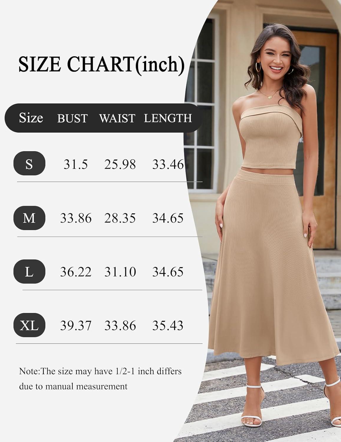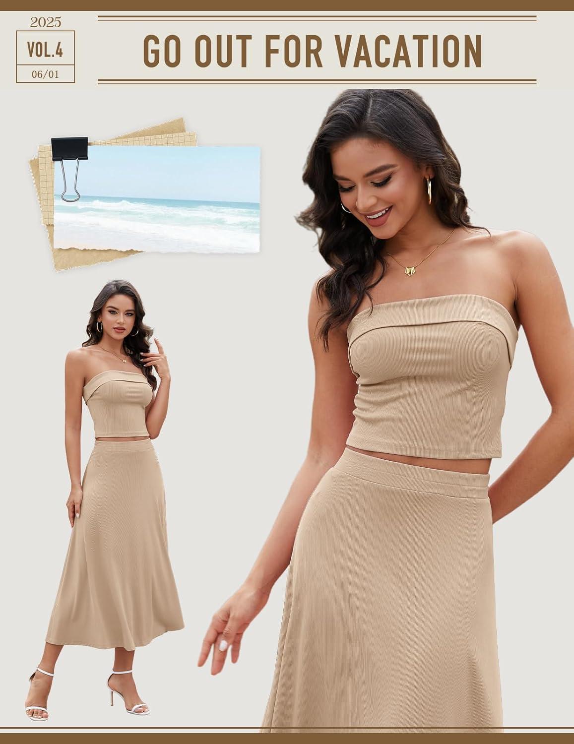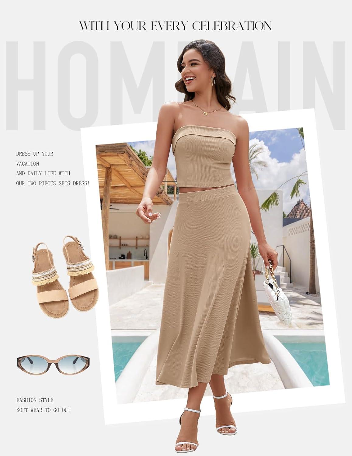HomRain Women’s 2 Piece Skirt Sets:Tube Top Maxi Skirt Sets 2 Piece Outfits for Wedding Formal Causal(Apricot)