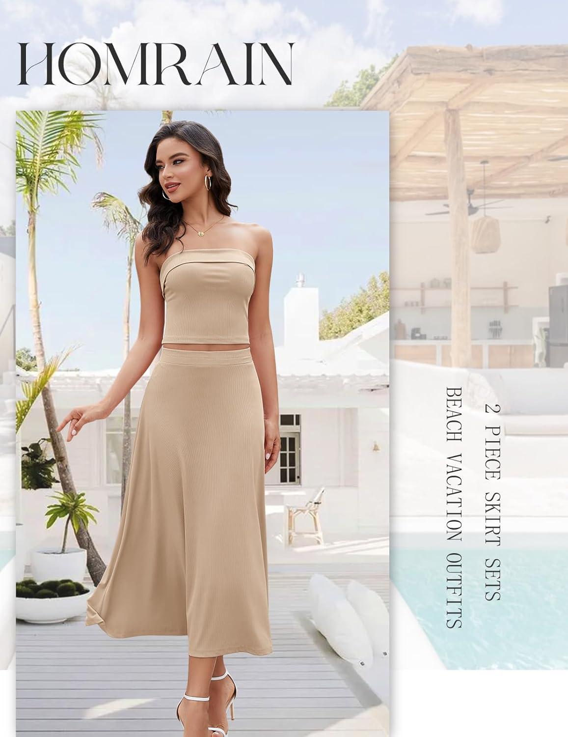 Be the first to review “HomRain Women’s 2 Piece Skirt Sets:Tube Top Maxi Skirt Sets 2 Piece Outfits for Wedding Formal Causal(Apricot)”