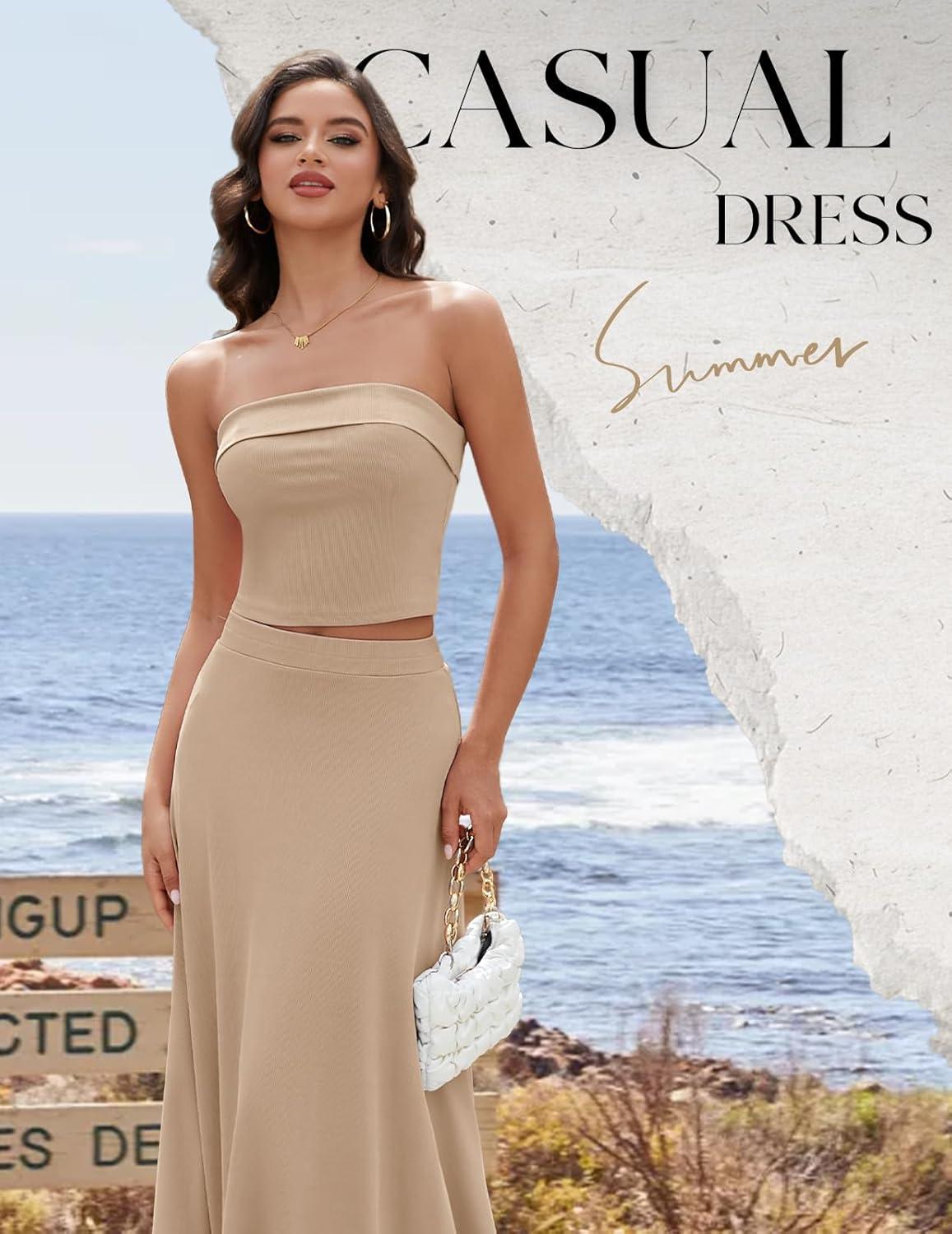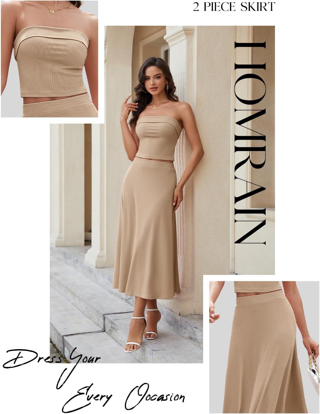 HomRain Women’s 2 Piece Skirt Sets:Tube Top Maxi Skirt Sets 2 Piece Outfits for Wedding Formal Causal(Blush)