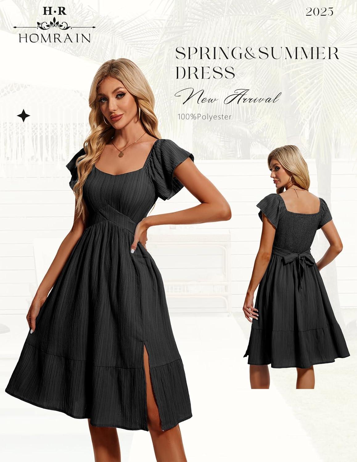 Be the first to review “HomRain Women’s Casual Midi Dresses Square Neck Split Beach Dress for Tea Party(Black)”