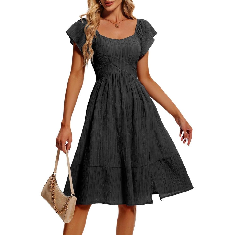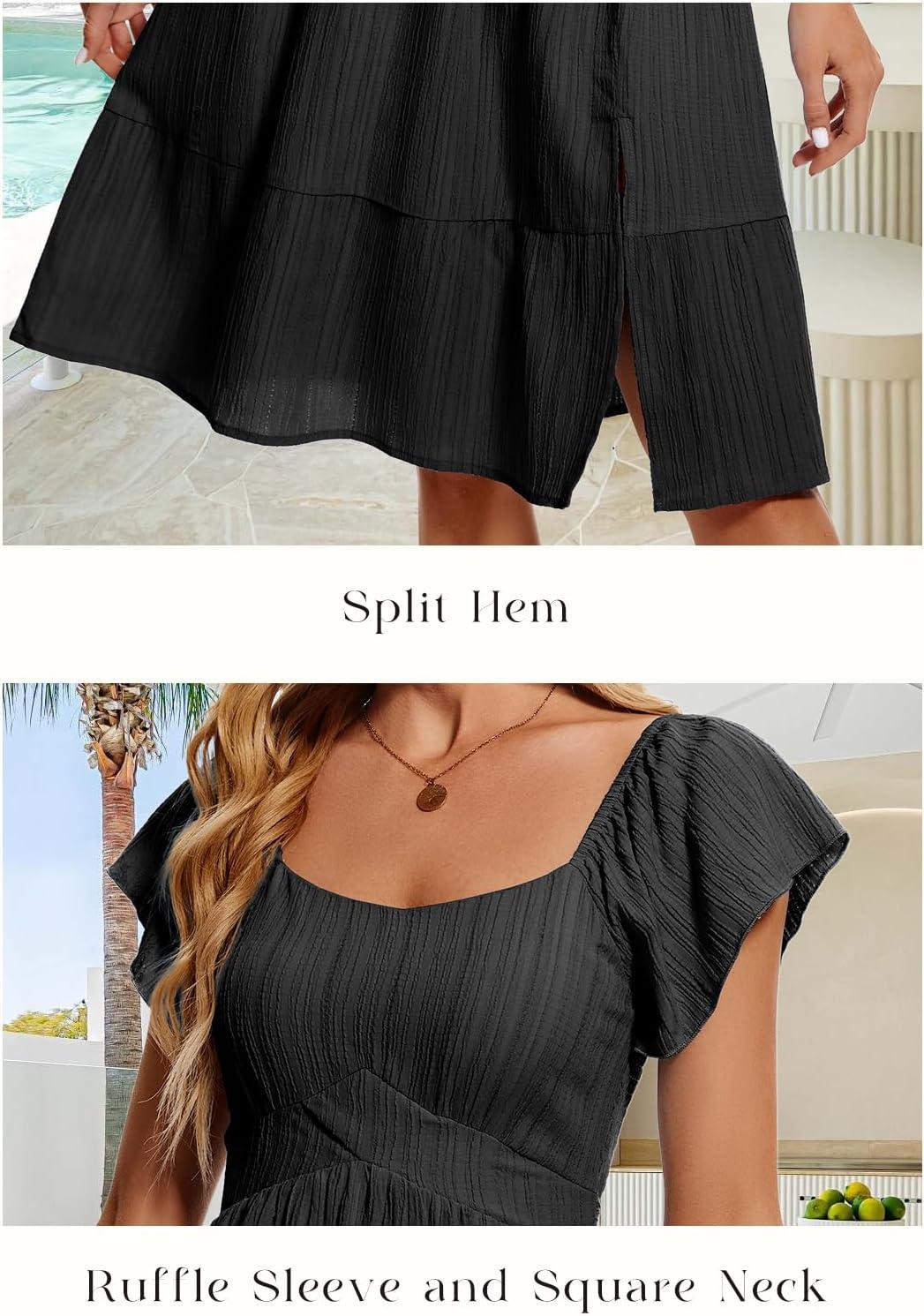 HomRain Women’s Casual Midi Dresses Square Neck Split Beach Dress for Tea Party(Black)