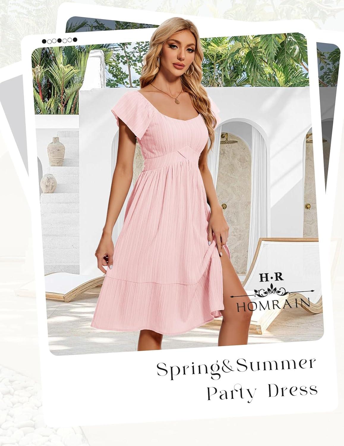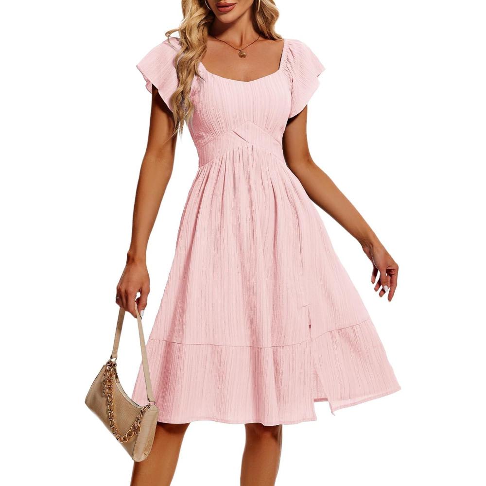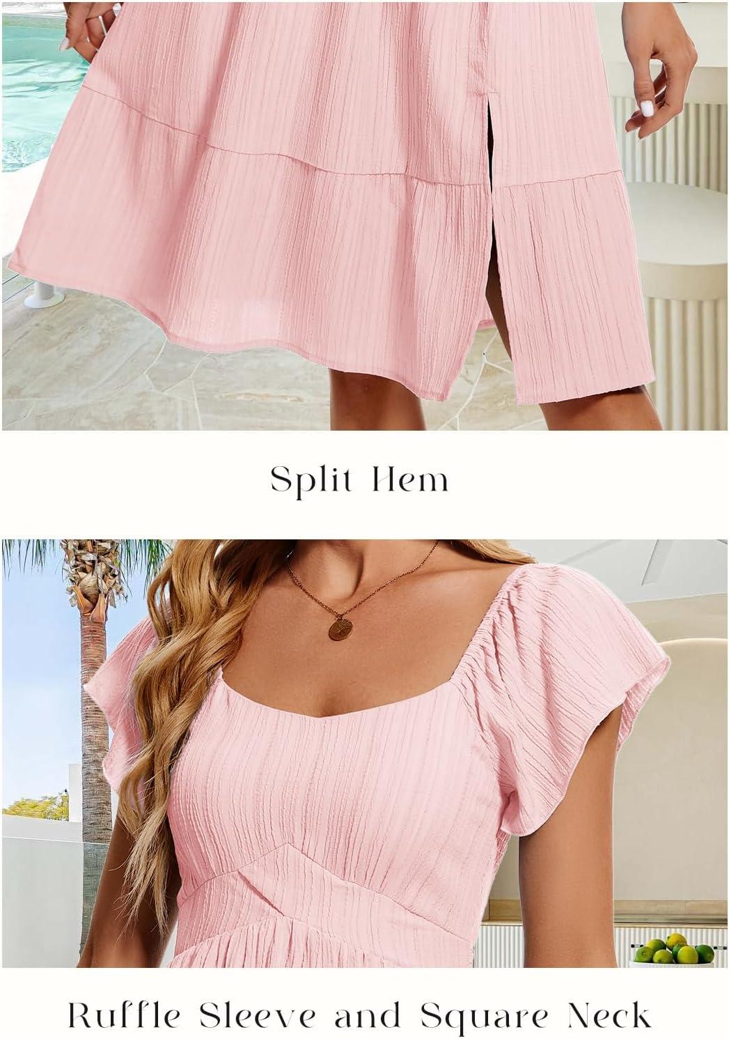 HomRain Women’s Casual Midi Dresses Square Neck Split Beach Dress for Tea Party(Blush)