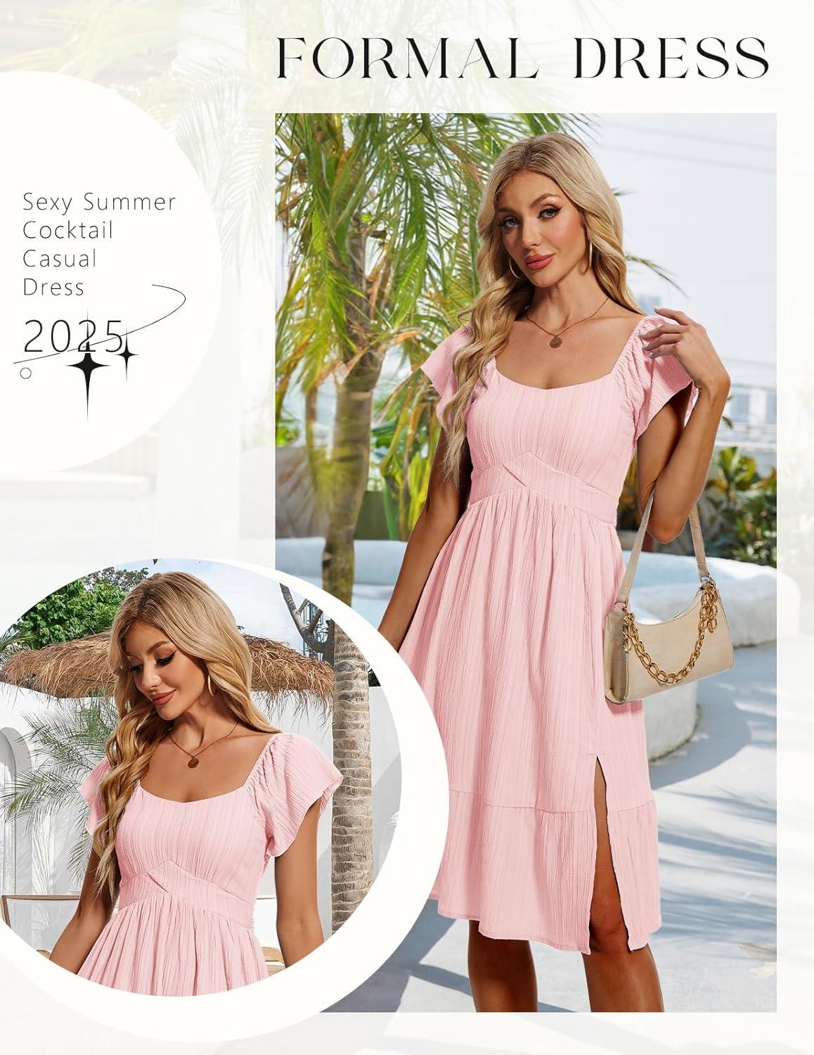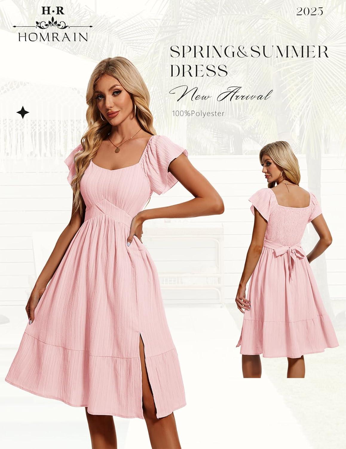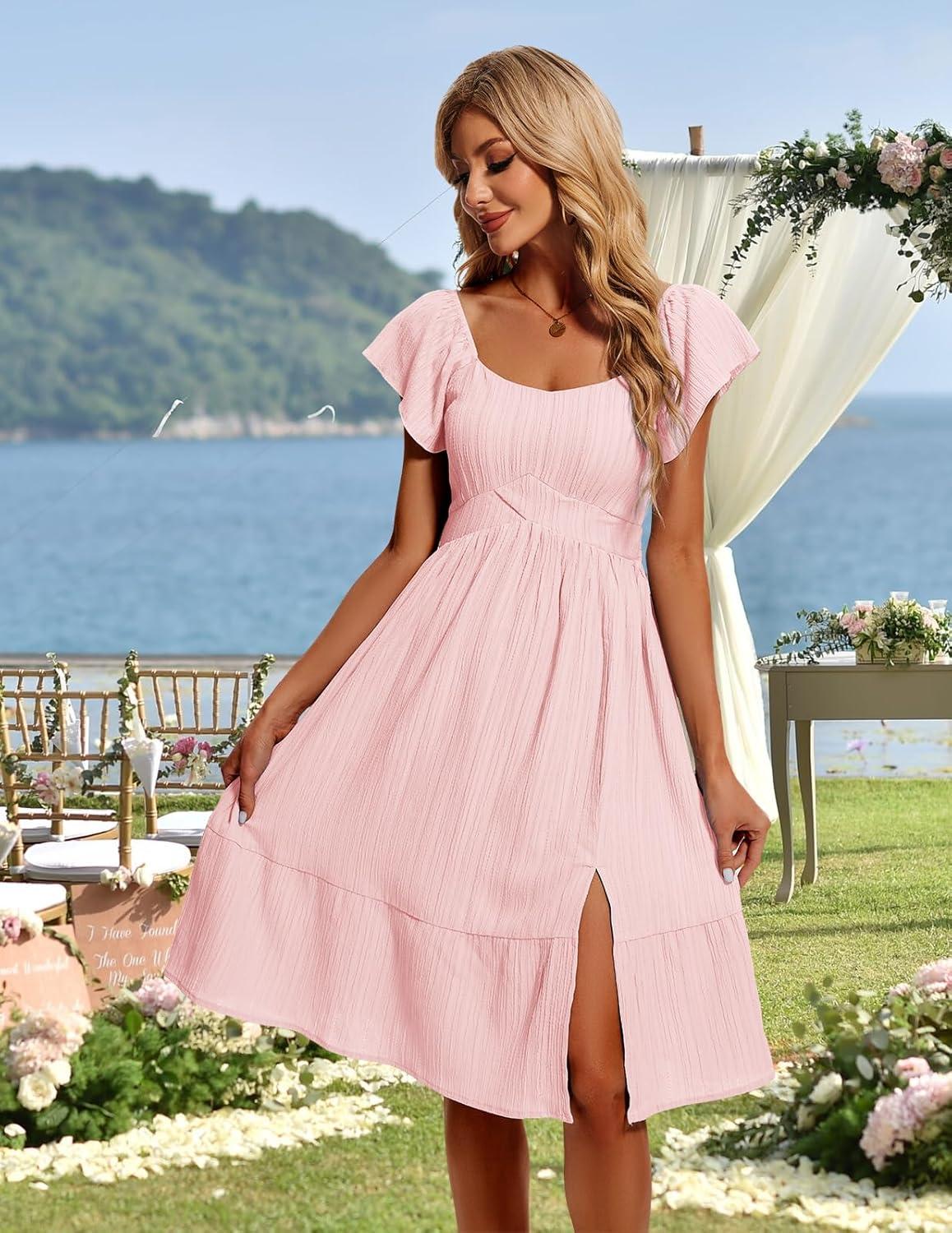HomRain Women’s Casual Midi Dresses Square Neck Split Beach Dress for Tea Party(Blush)