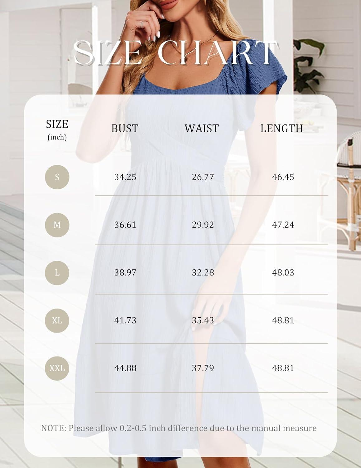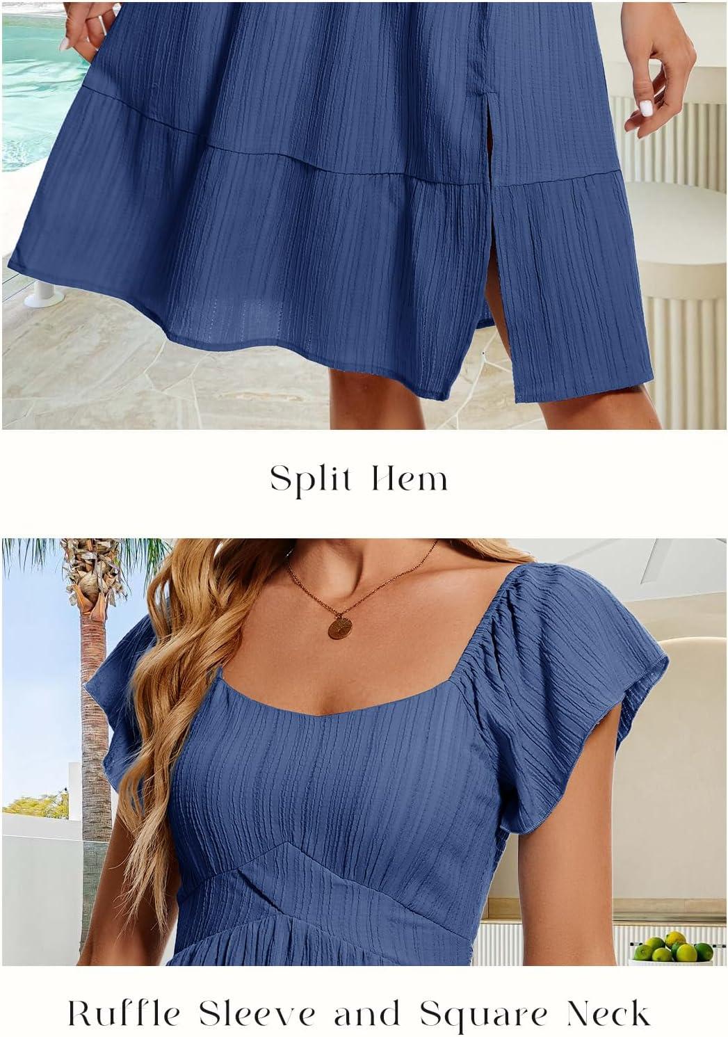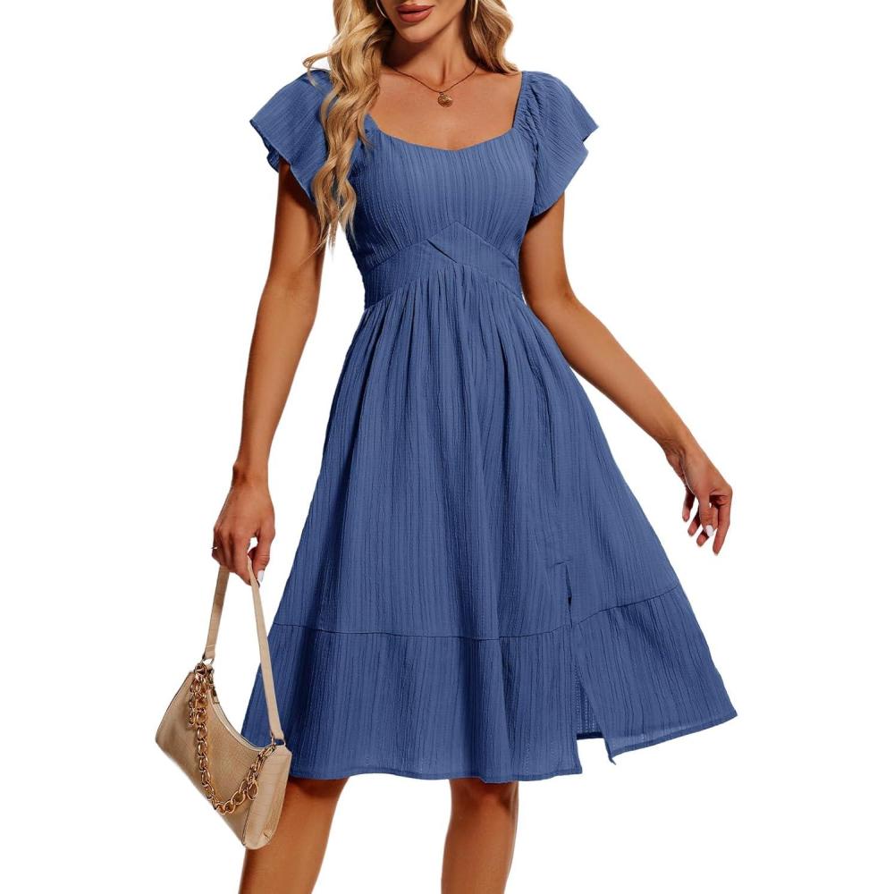 HomRain Women’s Casual Midi Dresses Square Neck Split Beach Dress for Tea Party(Greyblue)