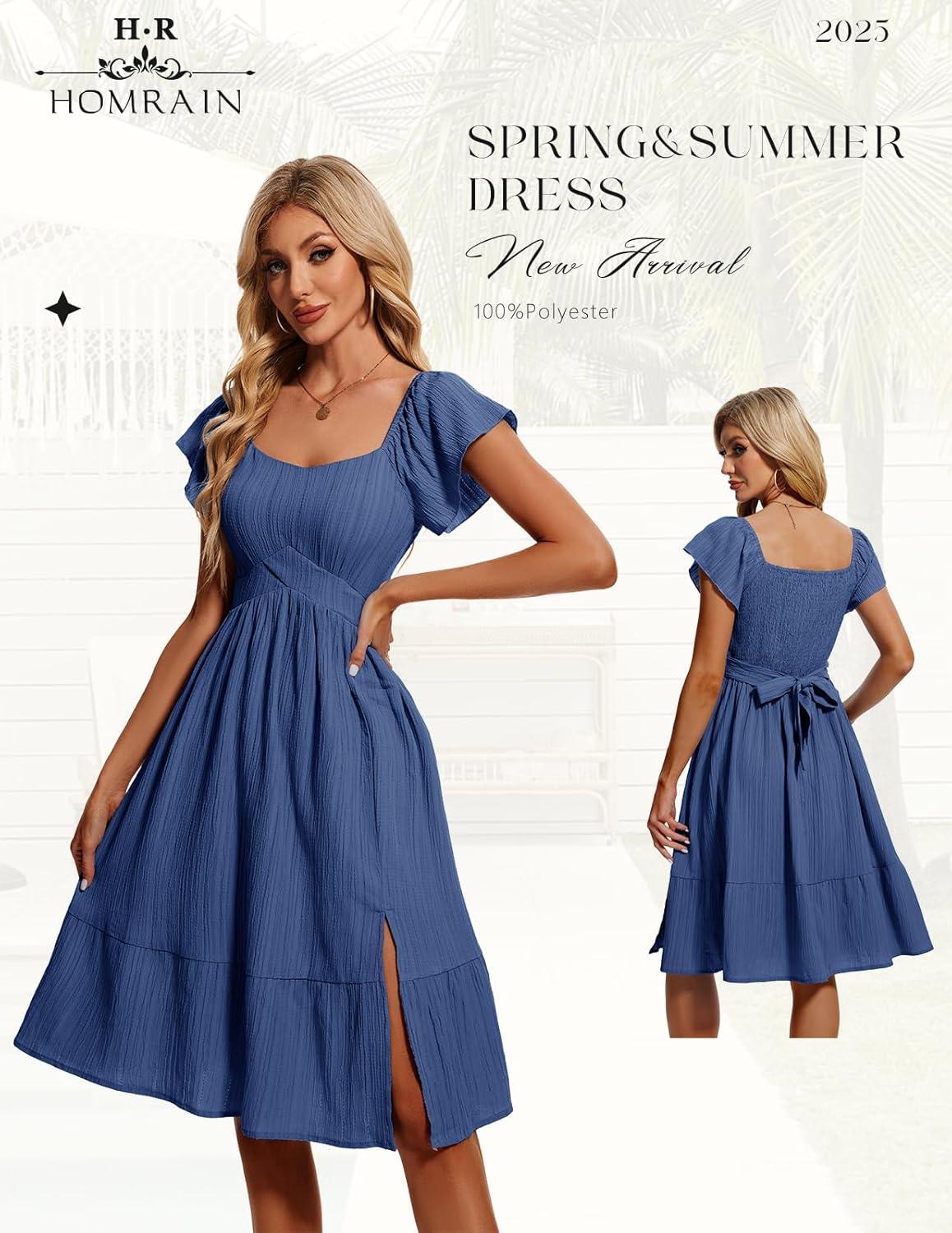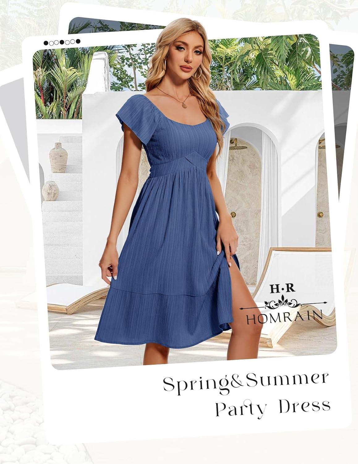 Be the first to review “HomRain Women’s Casual Midi Dresses Square Neck Split Beach Dress for Tea Party(Greyblue)”