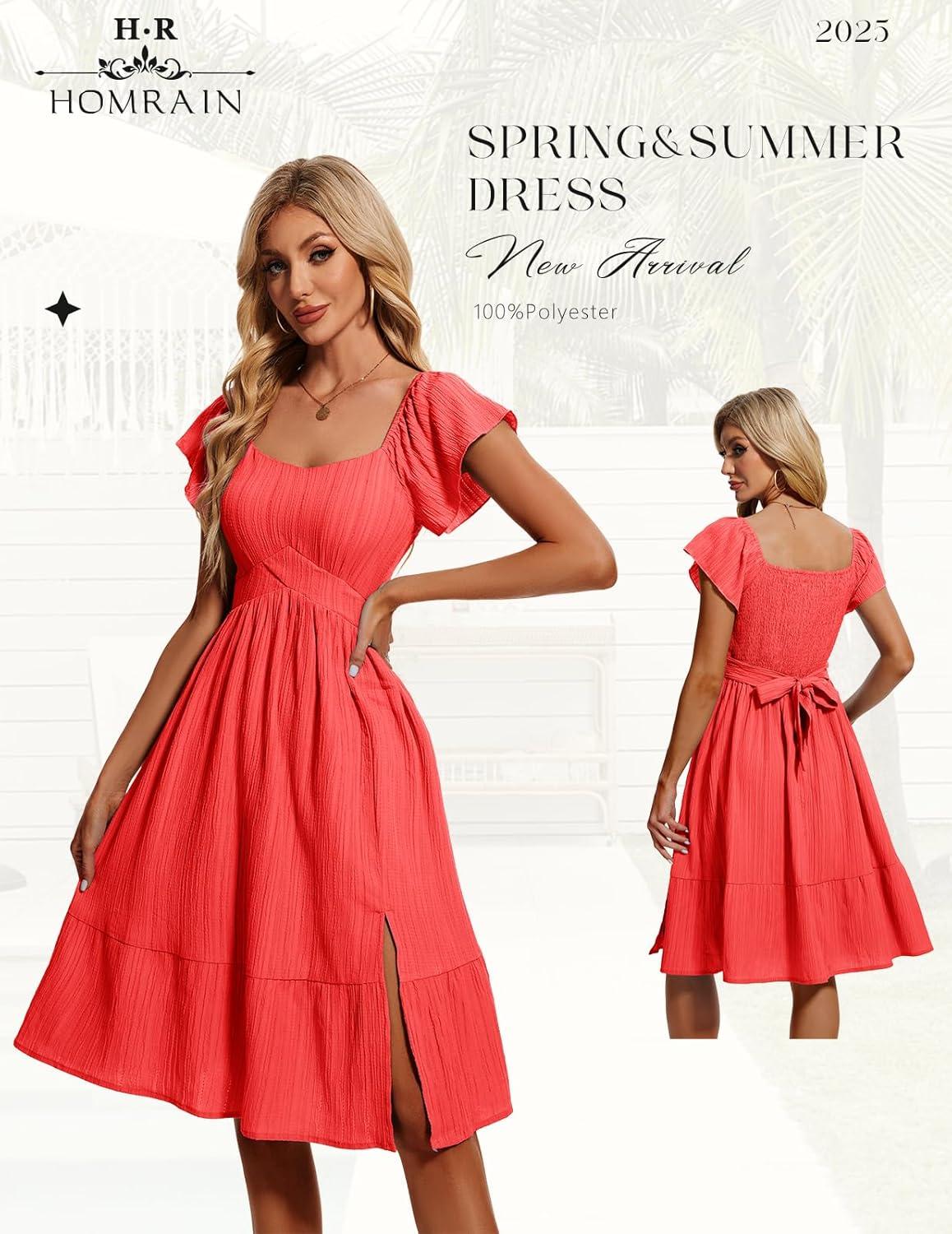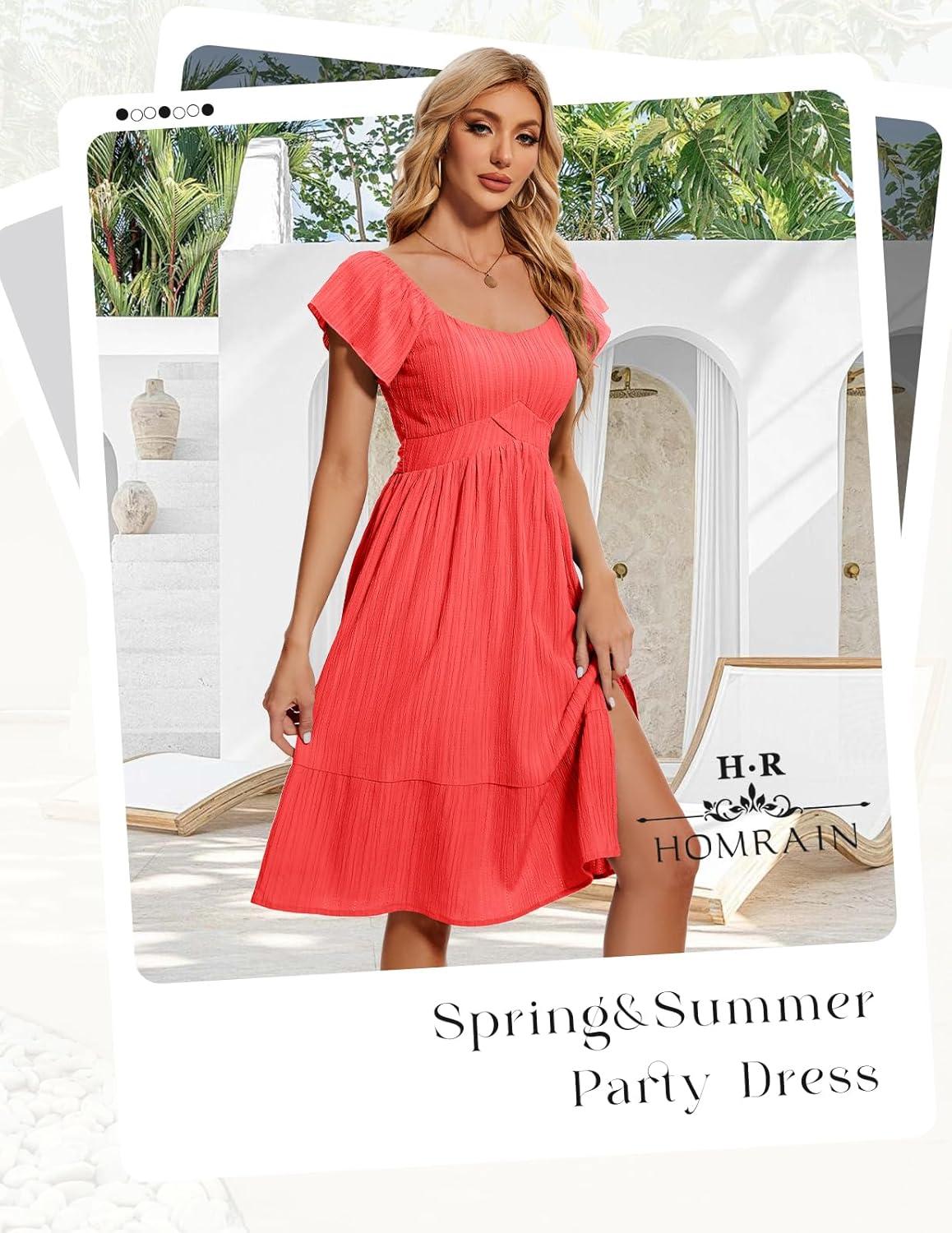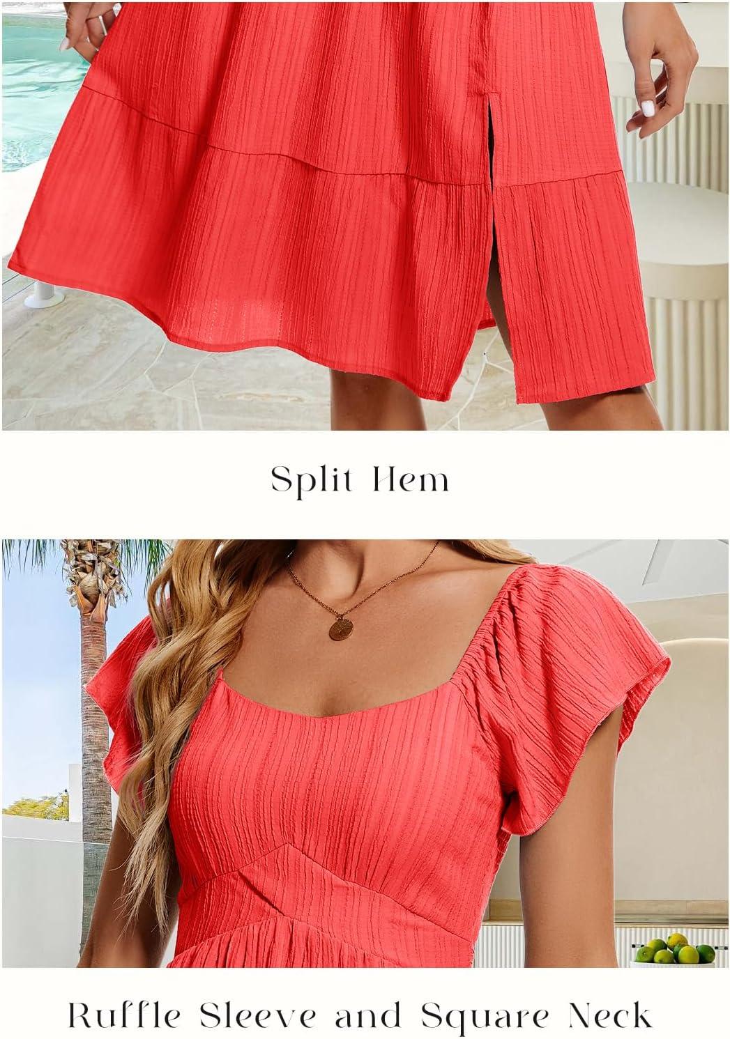 HomRain Women’s Casual Midi Dresses Square Neck Split Beach Dress for Tea Party(Red)