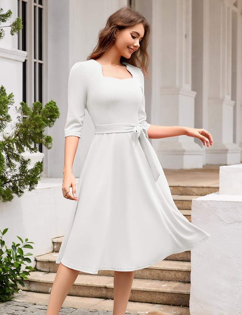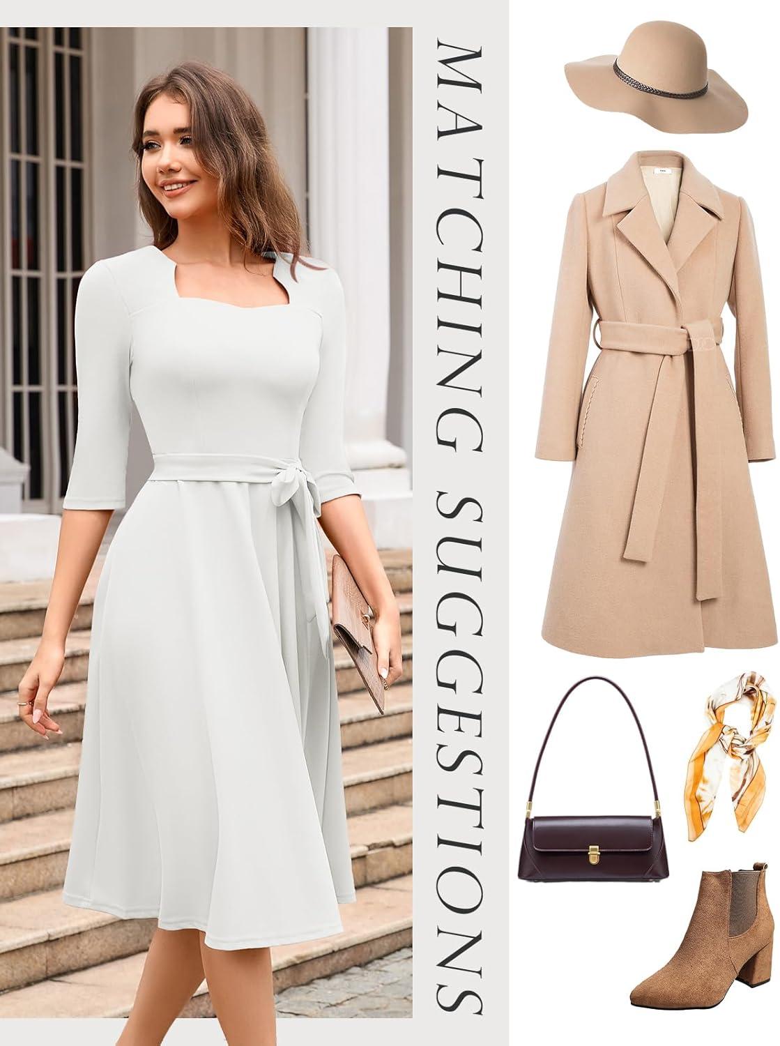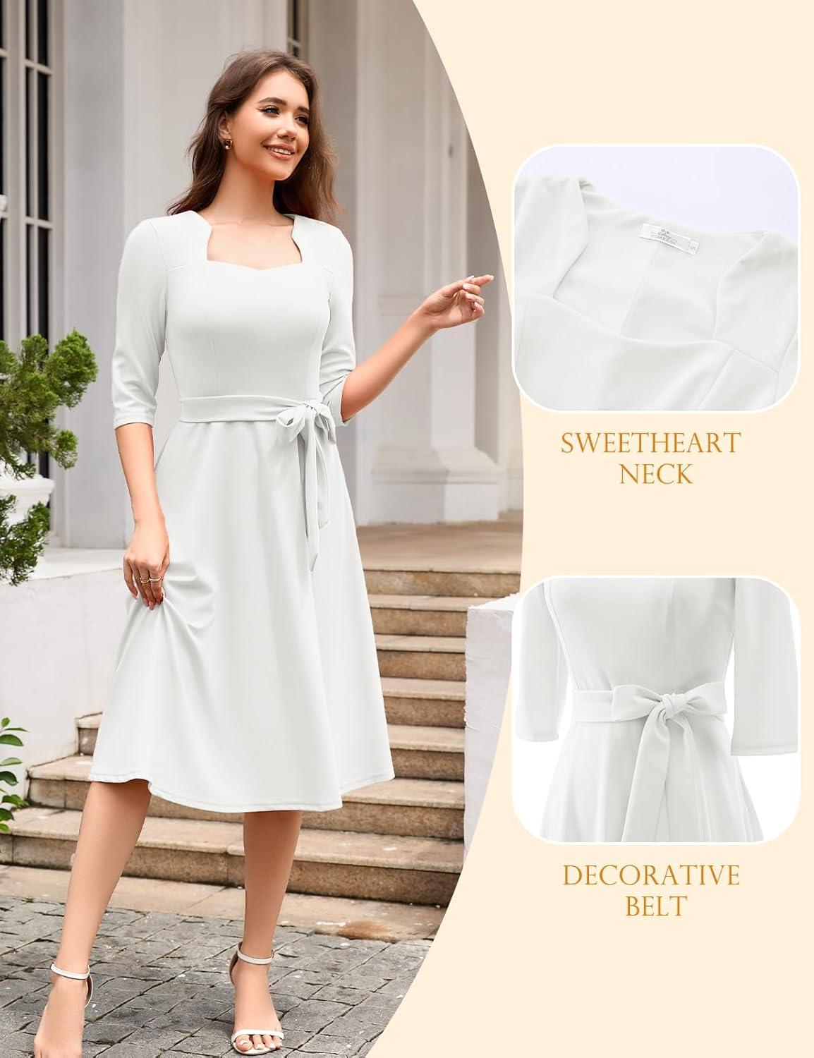 HomRain Women’s Cocktail Formal Dresses Elegant Wedding Guest A-Line Graduation Tea Party Modest Church Dress(White)
