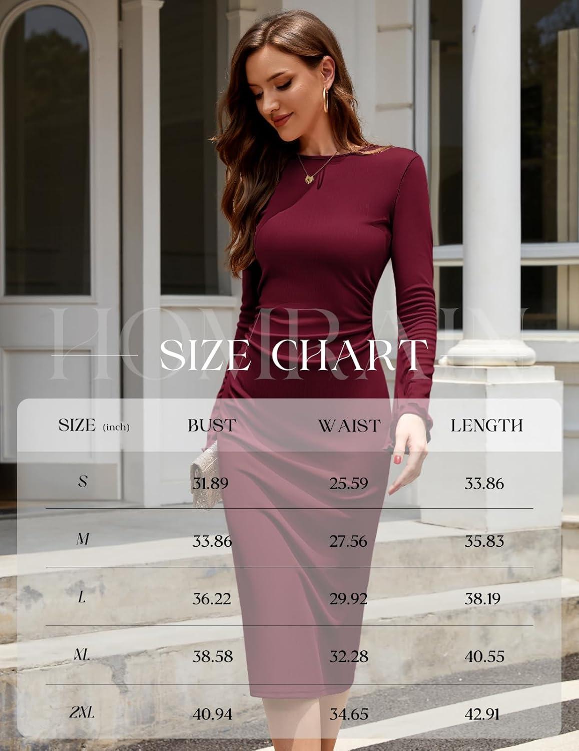 HomRain Women’s Crew Neck Bodycon Dresses for 2025 Fall Ribbed Knit Midi Fashion Date Party Cocktail Dress(Burgundy)