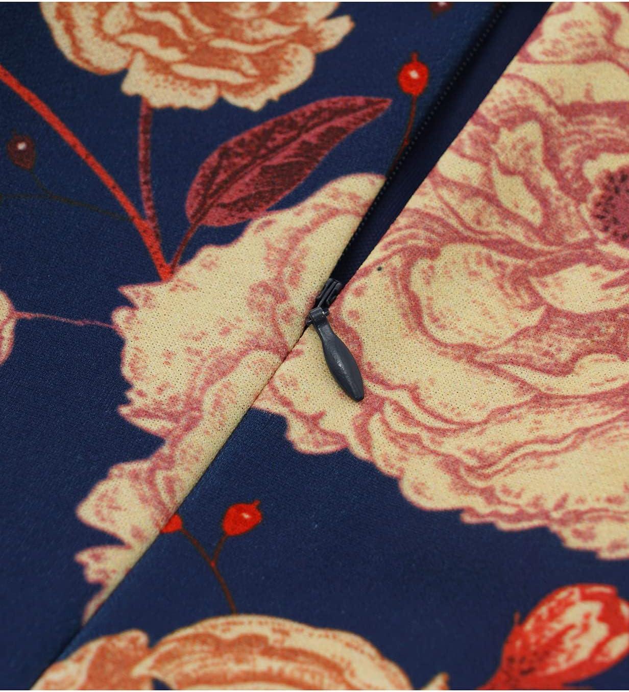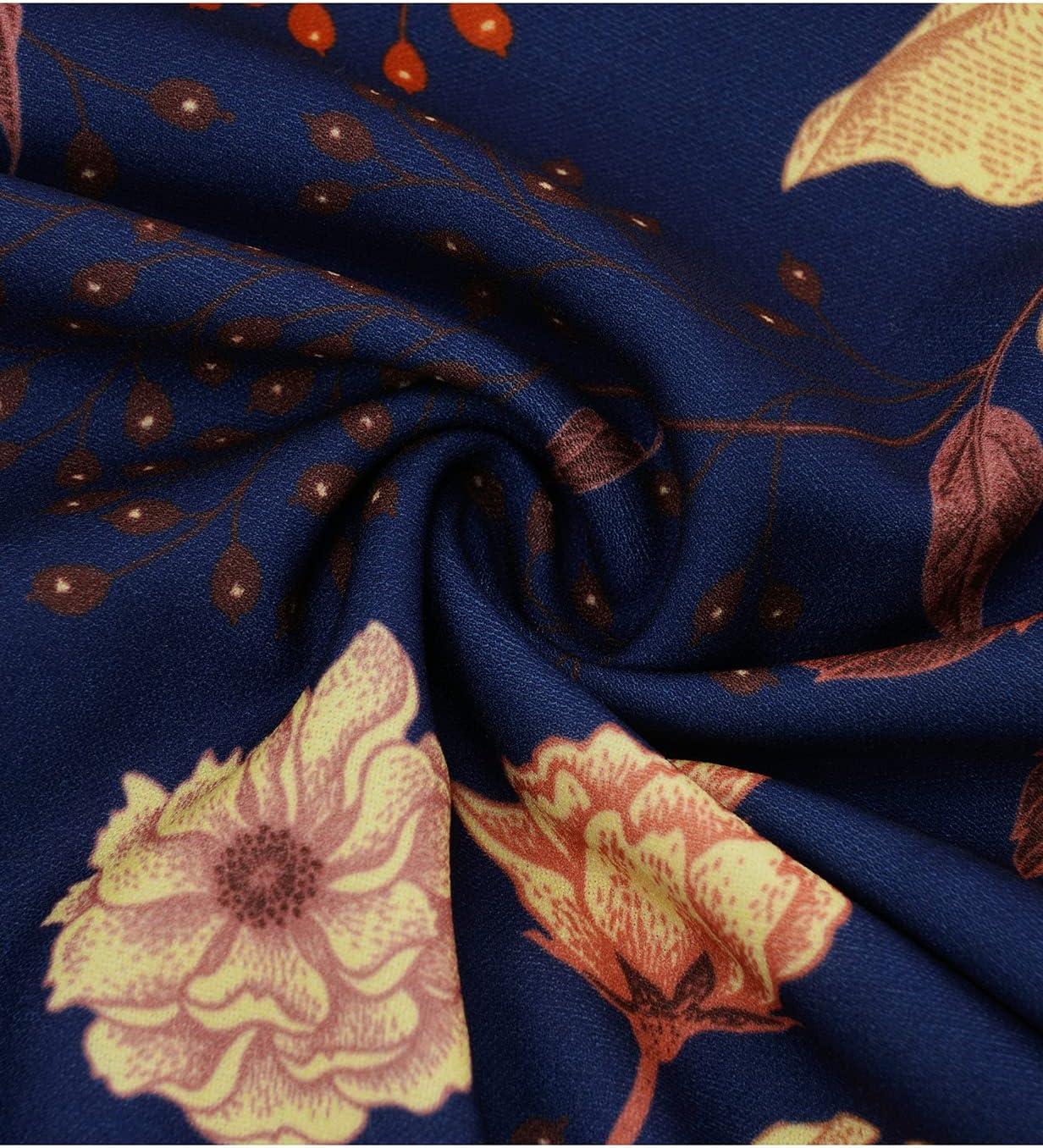 HomRain Women’s Long Sleeve Velvet Midi Dresses for Wedding Guest Church Formal Winter Christmas Cocktail Party(Navy Yellow Flower)